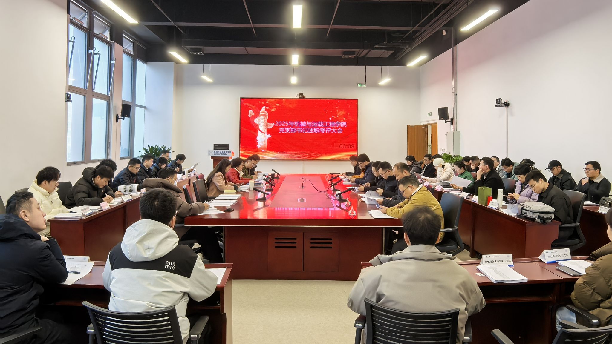 2026年1月12日下午,机械与运载工程学院党委组织召开2025年党支部书记工作述职考评会。学院党委委员、全体党支部书记参加会议。会议由学院党委书记陈晓慧主持。会议采取现场述职与书面述职相结合的方式,23位党支部书记依次进行现场汇报。各支部书记紧扣考核要求,围绕深入学习贯彻习近平新时代中国特色社会主义思想、党的二十大和二十届历次全会精神,深入贯彻中央八项规定精神学习教育,以及落实“教育党员、管理党员、监督党...